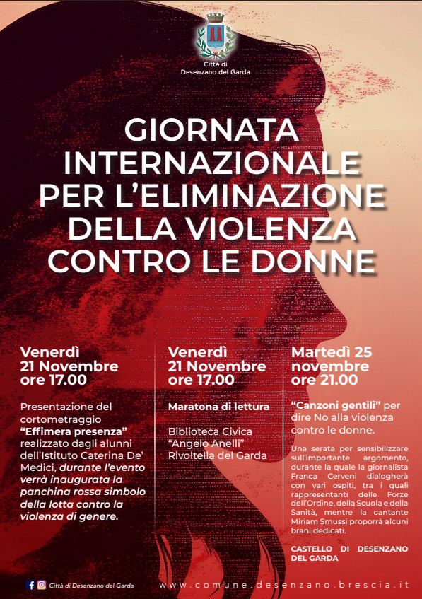 ll Comune di Desenzano del Garda partecipa alla Giornata Internazionale per l’Eliminazione della Violenza contro le Donne con una serie di iniziative aperte alla cittadinanza, per riflettere insieme, sensibilizzare e ribadire un forte No alla violenza di genere.